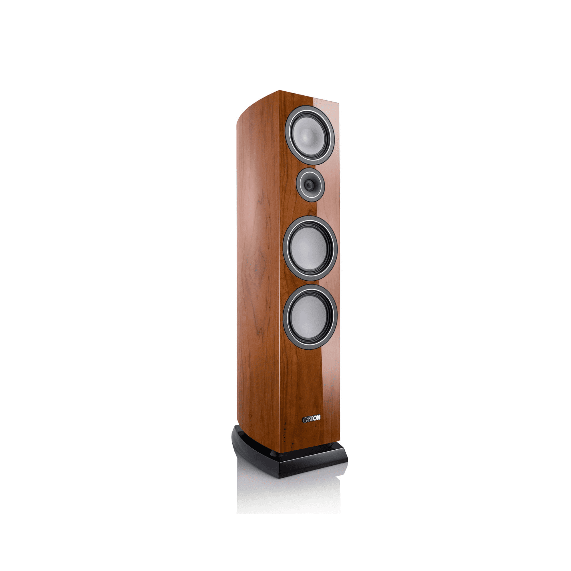 The new cabinets not only look high quality, they also have to meet Canton’s rigid technical requirements. The revised design ensures that more interior volume is available to tune the speakers with more bandwidth in the low frequency range. As a result, the new Vento speakers perform with even more contour and cleanliness. In addition, the sharp-edged cabinet radii, the modified base, and the new basic shape ensure less sound interference from the cabinet itself. The newly designed base makes the Vento 90 appear to “float”, giving the stately floorstanding speaker a light and elegant appearance. In addition, the base design ensures that the speaker is particularly uncritical in its placement.